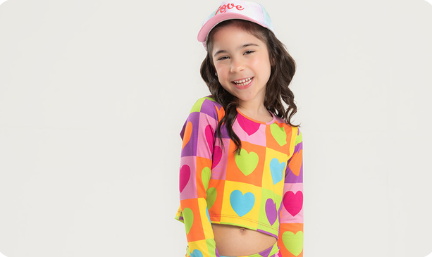 O Conjunto Biquíni Infantil Menina Corações é puro charme e conforto para os dias de sol!