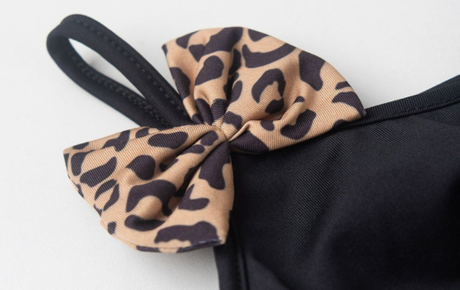 O top alcinha na cor preta é confeccionado em suplex com toque macio (96% poliéster e 4% elastano), e conta com um delicado laço aplicado, trazendo um toque de fofura ao visual.