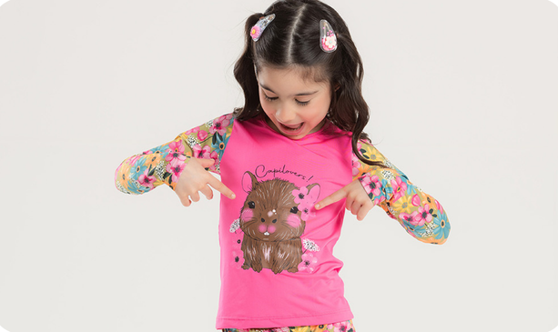 O Conjunto Biquíni Infantil Capivara é a escolha ideal para unir conforto, diversão e proteção nos dias de sol.
