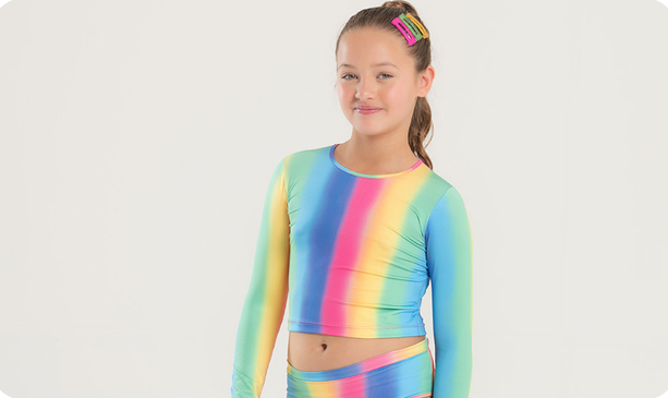 O cropped de manga longa, na cor rosa, é confeccionado em suplex 96% poliéster 4% elastano com estampa sublimada divertida, proporcionando proteção e muito estilo.