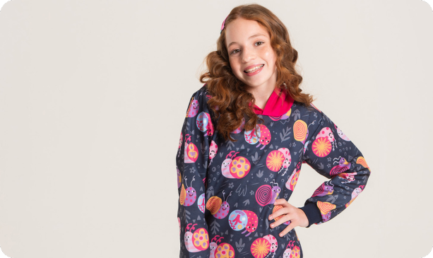 O Conjunto Infantil Inverno Menina Blusão e Calça em Moletom Caracóis Coloridos é perfeito para os dias mais frios, unindo aconchego e diversão.