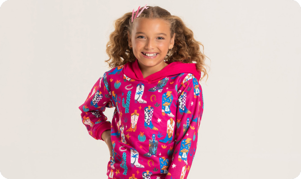 O blusão em moletom com felpa 100% poliéster, na cor pink, traz uma estampa sublimada charmosa, capuz aconchegante e acabamentos em ribana nos punhos e barra, garantindo um ajuste perfeito.