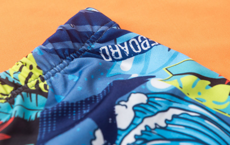 Acompanha sunga na cor azul, com estampa sublimada de pranchas e cós com elástico, garantindo ajuste confortável e liberdade nos movimentos. Ideal para momentos de praia e piscina com muita proteção e estilo.