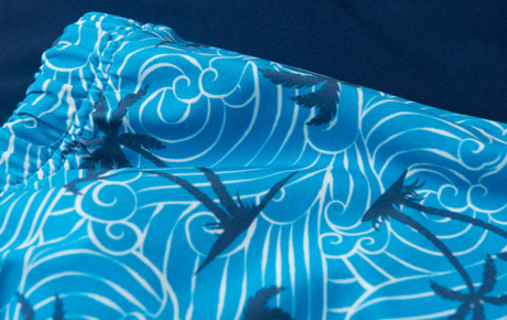 A sunga, em tom de azul, também é feita em suplex com estampa sublimada de coqueiros e cós com elástico, garantindo ajuste perfeito e liberdade para os pequenos aproveitarem os dias de praia ou piscina com muito estilo.