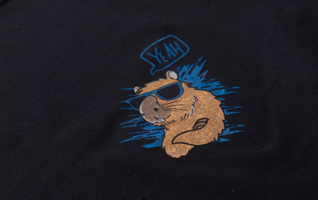 A camiseta de manga longa, na cor preta, é confeccionada em suplex com 96% poliéster e 4% elastano, e traz uma estampa lateral de capivara que adiciona um toque divertido ao visual.