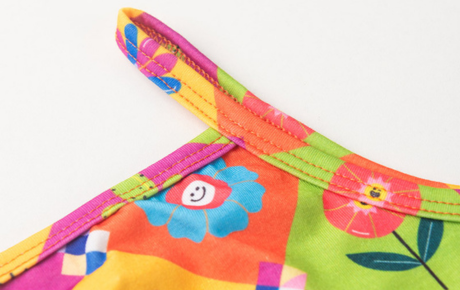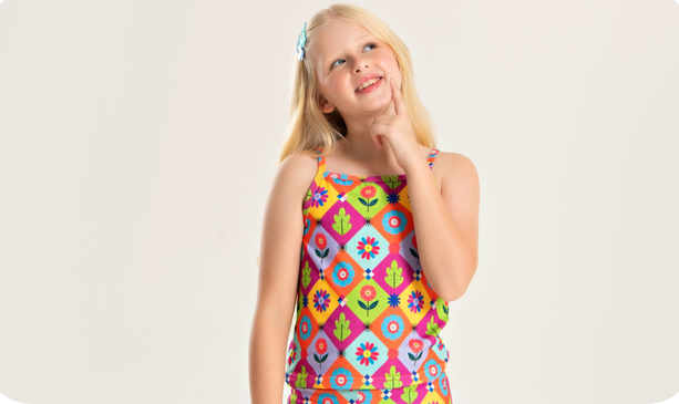 O cropped de alcinha, na cor laranja, é confeccionado em poliplex com 96% poliéster e 4% elastano, e conta com estampa sublimada que traz leveza e alegria ao visual.