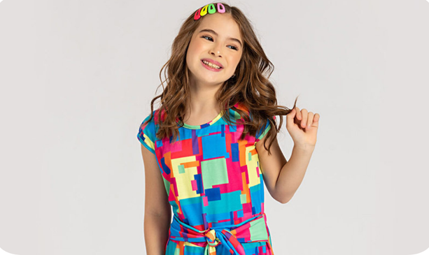 O short, na mesma cor magenta vibrante, também é feito em poliplex sublimado e conta com amarração frontal que proporciona charme e ajuste confortável. Um conjunto encantador, ideal para acompanhar sua pequena em todos os momentos com liberdade e muito estilo!