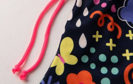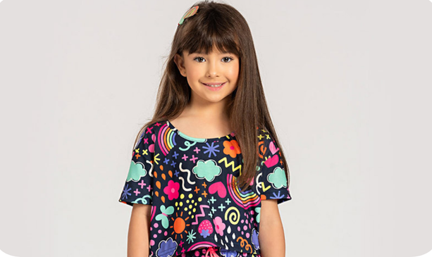 O shorts, no mesmo tecido, conta com cós rebatido e cadarço neon, garantindo ajuste prático e toque divertido ao visual. Um conjunto versátil para brincar com leveza e aproveitar o verão com muito estilo!