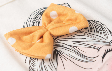 A blusa, na cor natural, é confeccionada em meia malha 100% algodão, oferecendo frescor e maciez, e conta com estampa frontal divertida e laço aplicado que traz um toque delicado ao look.