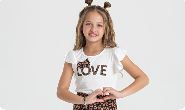 Delicado e encantador, o Conjunto Verão Menina Oncinha une charme e liberdade para os dias mais quentes.