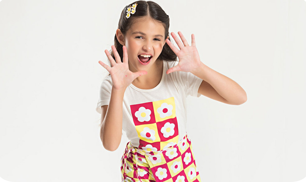 Garanta conforto e qualidade para sua criança com o Conjunto Verão Menina Blusa e Shorts Saia Flores Pop.
