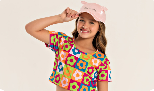 O shorts, também em pink, possui estampa combinando, cós com elástico e cadarço para melhor ajuste, garantindo liberdade nos movimentos. Um look encantador e cheio de charme para as pequenas aproveitarem o verão com estilo.