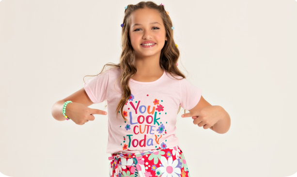 O Conjunto Verão Menina Blusa e Shorts Saia Florzinhas é a escolha ideal para os dias quentes, unindo conforto e delicadeza.