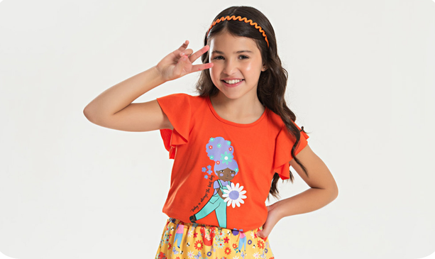 Garanta conforto e qualidade para sua criança com o Conjunto Verão Menina Blusa com Manga Babado e Saia Jardim Florido.