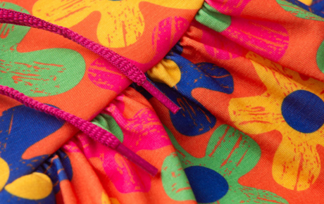 A saia, também em laranja, traz estampa sublimada floral, cadarço decorativo no cós e acabamento com babado na barra, garantindo um visual alegre e cheio de movimento. Um conjunto fresquinho, estiloso e perfeito para os dias de verão.