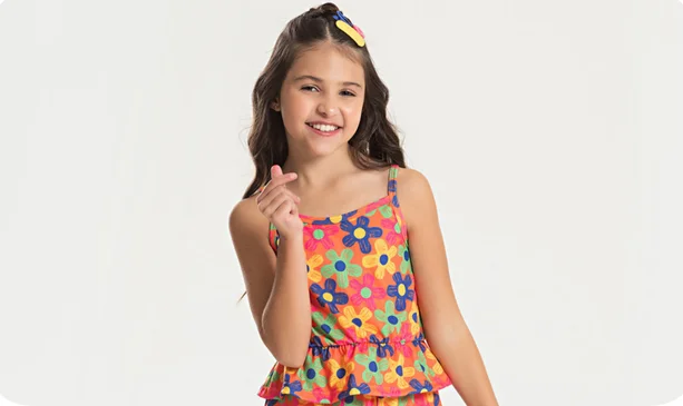 Garanta conforto e qualidade para sua criança com o Conjunto Verão Menina Cropped Alcinha e Saia com Babado Flores.