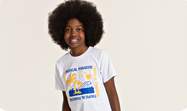 Se você procura versatilidade, conforto e estilo em um só, o conjunto verão menino Tropical Paradise é a escolha ideal para seu pequeno. A camiseta branca, feita em meia malha 100% algodão, conta com uma estampa frontal inspirada em paisagens tropicais, perfeita para combinar com a energia do verão. A gola reforçada garante maior durabilidade, mantendo a peça bonita mesmo após várias lavagens. Além disso, se você quiser conferir outros modelos estilosos para a época mais amada do ano, nossa categoria de Conjuntos Infantis Masculinos oferece várias opções igualmente divertidas.
