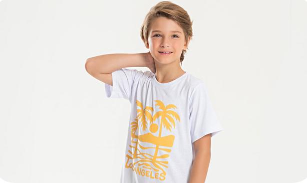 Garanta conforto e qualidade para sua criança com o Conjunto Verão Menino Camiseta e Bermuda com Cadarço Los Angeles.