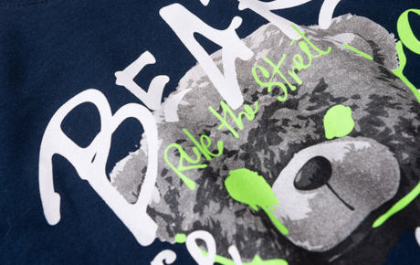 A camiseta azul marinho é confeccionada em meia malha 100% algodão, garantindo toque macio e boa ventilação. O reforço na gola oferece um acabamento durável e confortável, enquanto a estampa frontal com tema de urso adiciona personalidade ao visual. É uma peça que equilibra qualidade e estilo, perfeita para acompanhá-lo em brincadeiras e passeios.