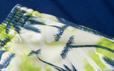 Já a bermuda, confeccionada em moletom sem felpa 100% poliéster, vem na cor verde com estampa sublimada de coqueiros, transmitindo o clima tropical perfeito para curtir os dias quentes com muito estilo e liberdade.