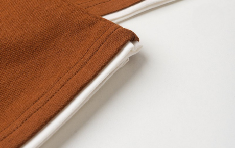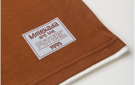 A camiseta, em tom marrom, é confeccionada em meia malha 100% algodão, com estampa moderna e reforço na gola para maior durabilidade. O destaque fica por conta da bainha sobreposta na cor natural, que traz um visual moderno e descolado.