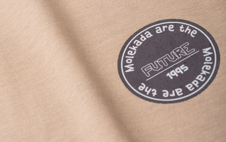 A camiseta, na cor marrom, é confeccionada em meia malha 100% algodão, com estampa lateral moderna e reforço na gola, garantindo conforto e resistência para o uso diário.