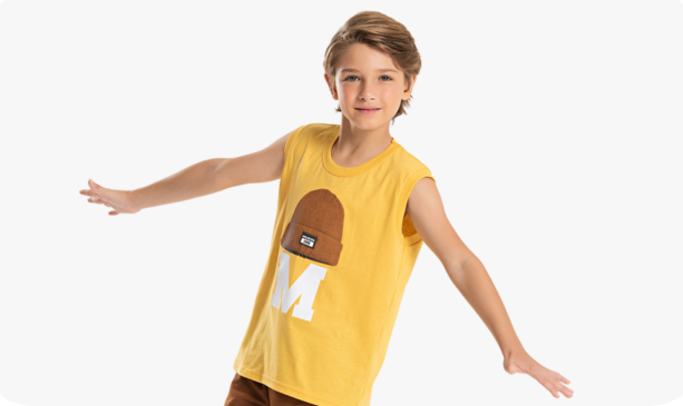 Deixe o verão do seu pequeno ainda mais estiloso com o Conjunto Verão Menino Regata e Bermuda Gorro M.