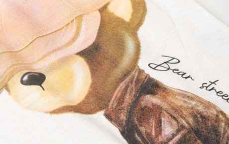 A camiseta, na cor natural, é confeccionada em meia malha 100% algodão, com estampa lateral de Urso e reforço na gola, garantindo conforto e resistência para acompanhar os pequenos em todas as aventuras.