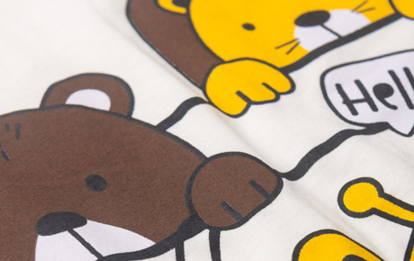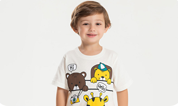 A camiseta, na cor natural, é confeccionada em meia malha 100% algodão, com estampa frontal divertida inspirada nos animais da selva, ideal para acompanhar a imaginação dos pequenos nas brincadeiras.