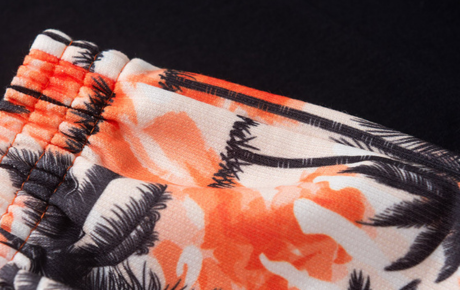 Já a bermuda, confeccionada em moletom sem felpa 100% poliéster, vem na cor laranja com estampa sublimada de coqueiros, transmitindo o clima tropical perfeito para curtir os dias quentes com muito estilo e liberdade.