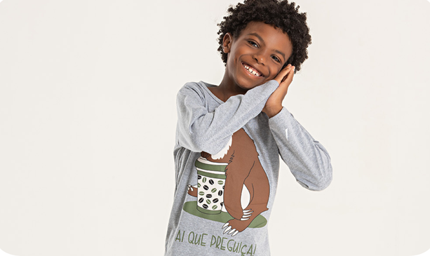 A blusa, confeccionada em meia malha 100% algodão, garante respirabilidade e suavidade para um sono tranquilo. Na cor mescla, traz uma estampa frontal divertida de preguiça, tornando o pijama ainda mais fofo e descontraído.