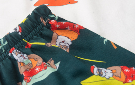 O Pijama Natal Verão Menino Papai Noel Surfista é a escolha perfeita para os pequenos curtirem a magia natalina com leveza e diversão.