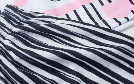 O shorts, em preto com estampa sublimada de listras, é feito em malha fiada 100% poliéster e possui cós com elástico, garantindo liberdade nos movimentos e muito conforto durante o sono.