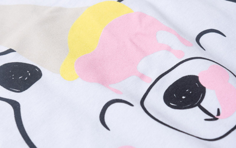 A blusa, na cor branca, é confeccionada em meia malha 100% algodão, com uma estampa frontal super fofa de ursinho com sorvete que deixa o visual ainda mais encantador.