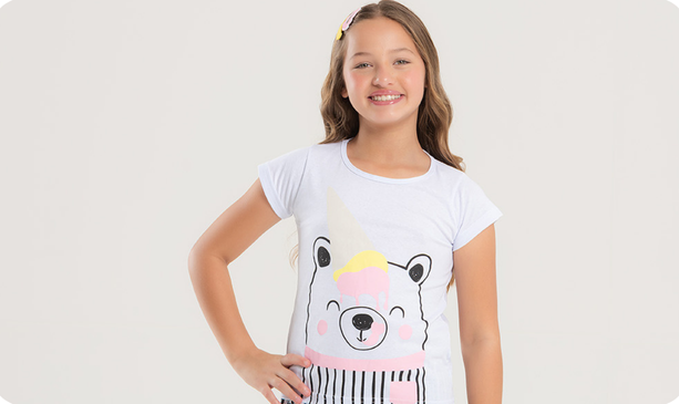 Para noites doces e divertidas, o Pijama Verão Menina Blusa e Shorts Ursinho com Sorvete é a companhia ideal!
