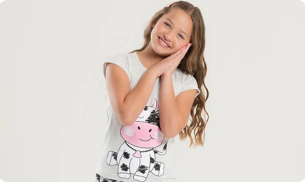 Para uma noite tranquila e cheia de charme, o Pijama Verão Menina Blusa e Shorts Vaquinha é a escolha ideal!