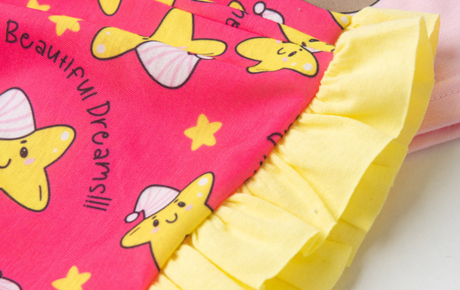 O shorts, em rosa, é feito em malha fiada 100% poliéster com estampa sublimada, cós com elástico e barra com babado rosa, garantindo conforto e liberdade para sonhar com estilo.