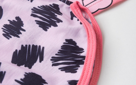 O shorts, na cor rosa claro, é feito em malha fiada 100% poliéster com estampa sublimada e bainha com friso rosa, que adiciona um toque delicado. Com cós com elástico, garante conforto e liberdade para dormir com estilo.