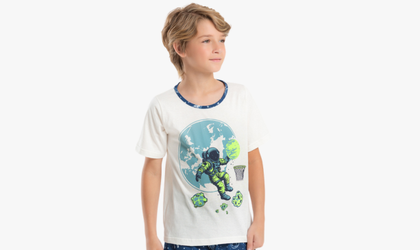 O Pijama Verão Menino Astronauta é perfeito para embalar os sonhos das crianças que amam o espaço.