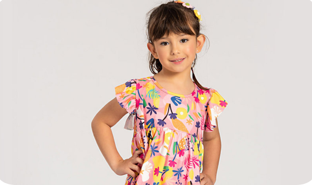 Deixe sua pequena ainda mais charmosa nos dias quentes com o Vestido Verão Menina Com Manga Tropical!